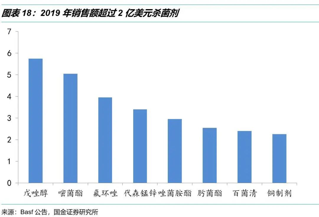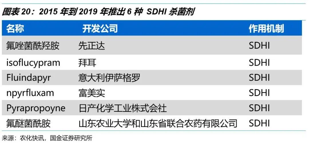 杀菌剂主要产品包括甲氧基丙烯酸酯类杀菌剂、三唑类杀菌剂、SDHI类杀菌剂,其中SDHI类杀菌剂增速最快。