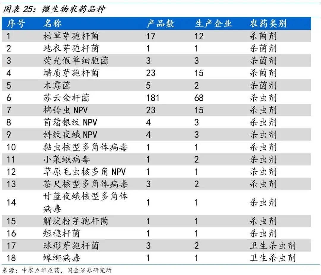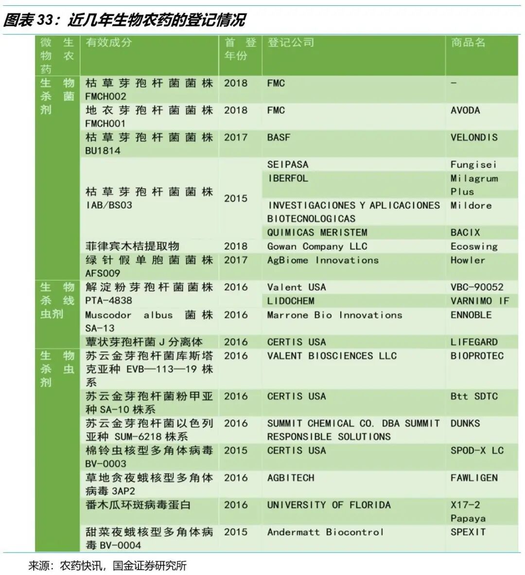 生物农药包括传统农药(微生物农药、植物源农药、昆虫天敌和信息素)、抗生素、生化农药以及生物刺激素等,因其毒副作用小、安全、环境兼容性好等特点已成为全球农药产业最热门的发展重点。