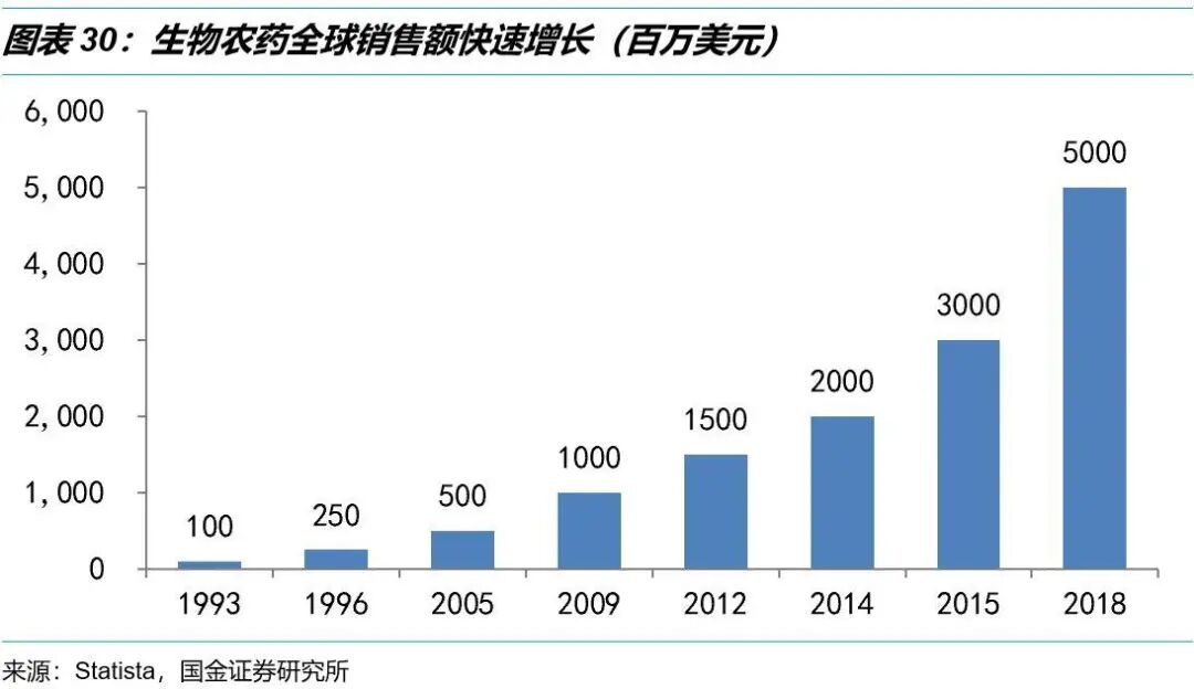 相较于化学农药,生物农药对非靶标生物影响较小,对环境相对友好,已成为全球农药产业最热门的发展重点。同时随着人们环保意识和消费能力的不断提高,对农产品的品质要求也会越来越高,使用生物农药种植的农产品更易受到人们的青睐。