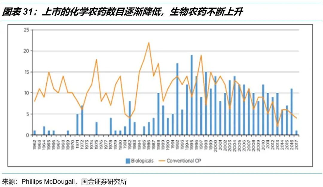 从登记角度看,生物农药登记成本更低,难度更小。在美国和加拿大,根据定义,生物农药的法规批准障碍比化学农药低。化学农药需的一些最昂贵的健康,安全和生态试验。生物农药由于其“源自天然材料”的地位,美国EPA对其登记要求较低。综合来看,生物农药推广应用是时代发展的必然趋势,是未来创新农药研发的重点。