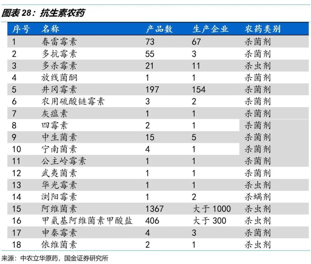 生物农药可分为微生物农药,生物化学农药、植物源农药、抗生素类农药、微生物类农药。目前国内生物农药的年产量为12万吨,防治面积达2670万公顷,约占农药市场份额的5%。生物农药登记产品约3000个,其中抗生素产品约占登记产品总数的70%。生物农药产品约占我国登记农药总数的11%-13%。